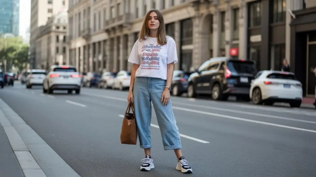 - Find Your Graphic: Choose a tee that you genuinely love. A vintage-style band tee adds a rock-and-roll edge. A modern, minimalist graphic tee can feel more artsy. The possibilities are endless.