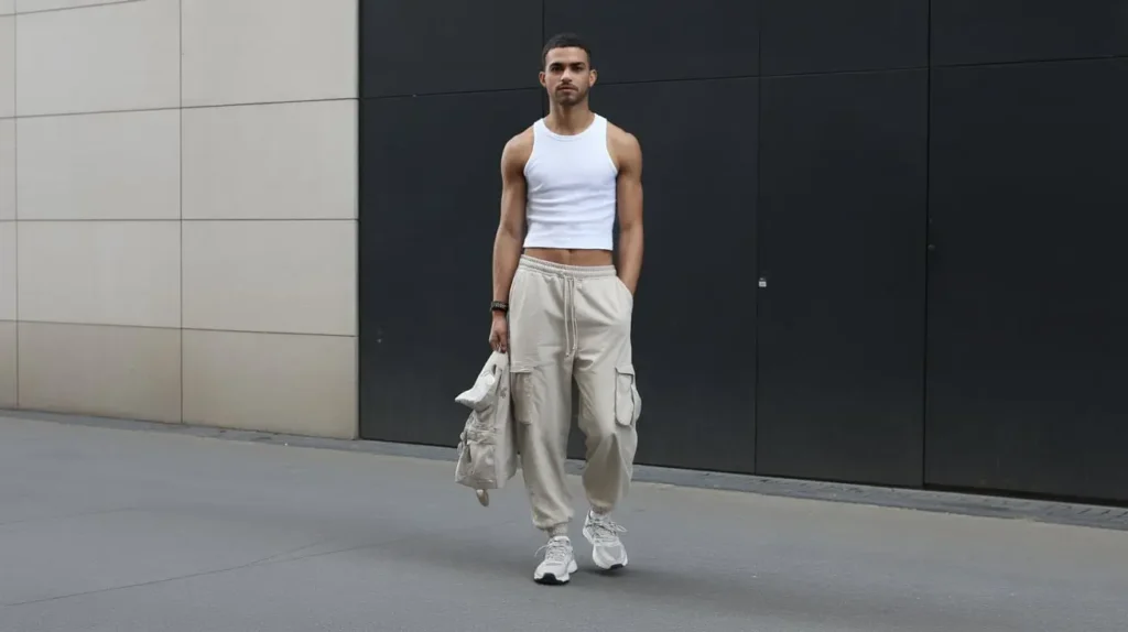 The concept is simple: take one overtly casual piece (the baggy joggers) and pair it with one more refined, body-conscious piece (the tank). The contrast is what makes it feel intentional and stylish.