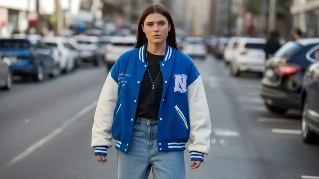 Channel your inner Ivy League-meets-street-style star. The oversized varsity jacket is a timeless piece that’s having a major comeback. Its preppy roots, combined with a modern oversized fit and paired with baggy jeans, create a look that’s both nostalgic and incredibly current.