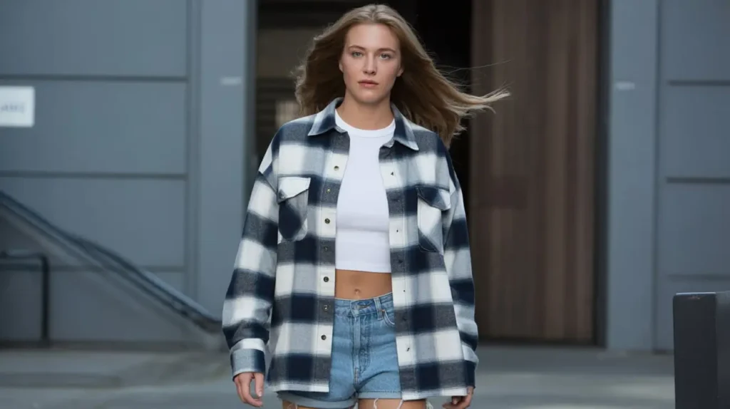 - How to Wear: Wear the flannel open over a simple tank top or baby tee. You can also wear it buttoned up and half-tucked into the shorts for a different silhouette.