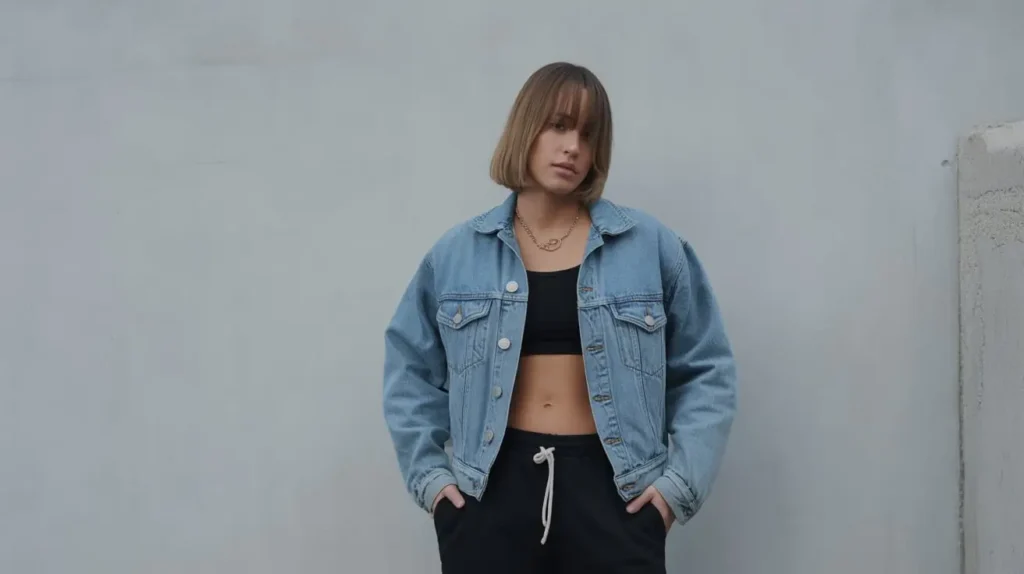 Ready to play with proportions? The crop top and baggy pants combo is a masterclass in silhouette play. It’s a youthful, fun, and sporty look that highlights your waist while keeping the overall vibe super relaxed.