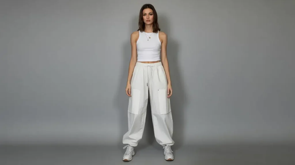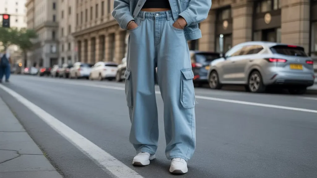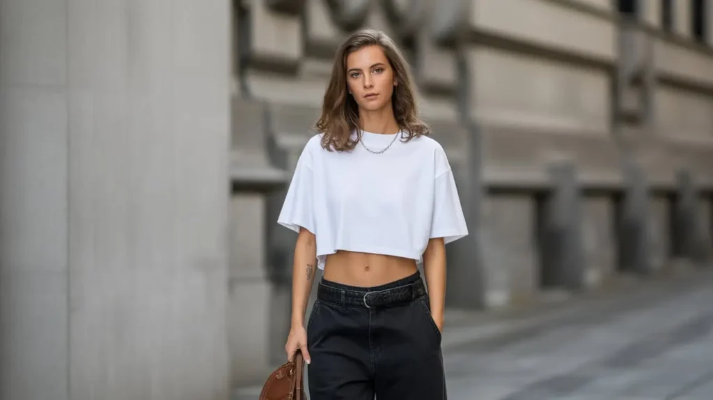 Get ready to transport back to the year 2002. The Y2K revival is in full swing, and the baby tee with baggy pants combo is one of its most iconic and wearable looks. It’s a fun, nostalgic, and slightly ironic take on fashion that doesn’t take itself too seriously.