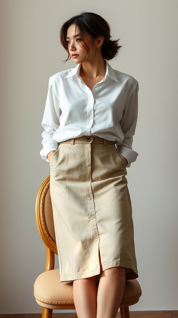 Chino Skirt with Casual Blouse