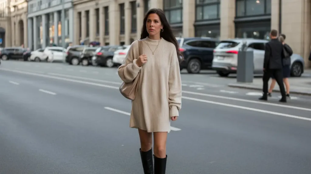 9. Sweater Dress with Knee-High Boots