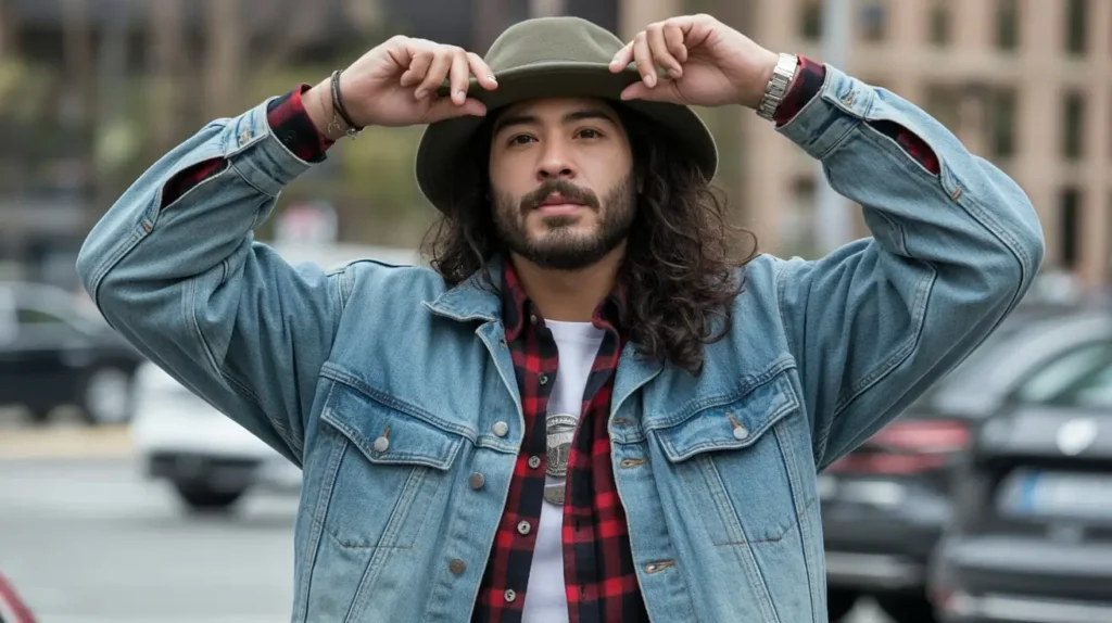 This look is all about casual comfort. Wear the flannel buttoned up or open over a simple graphic tee. Then, throw the denim jacket on top, maybe rolling the cuffs of both the jacket and the shirt together to show off the layers.