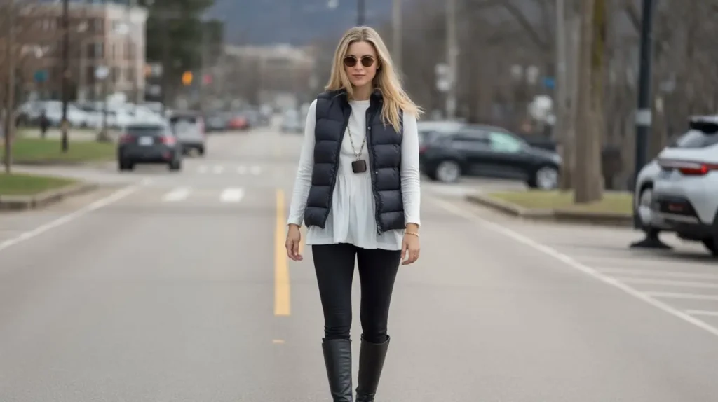 When the temperature drops, but you’re not ready for a full-on Michelin Man-style parka, the puffer vest is your best friend. It’s the perfect layering piece for cozy, practical style.