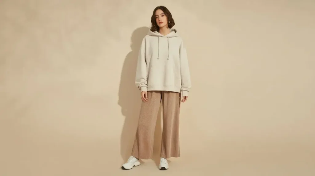Proportion is key to not getting lost in a sea of fabric. If your hoodie is particularly oversized and bulky, consider a slightly more cropped style to balance the volume of the wide-leg pants. Conversely, a standard-fit hoodie works beautifully with ultra-wide, flowy trousers.