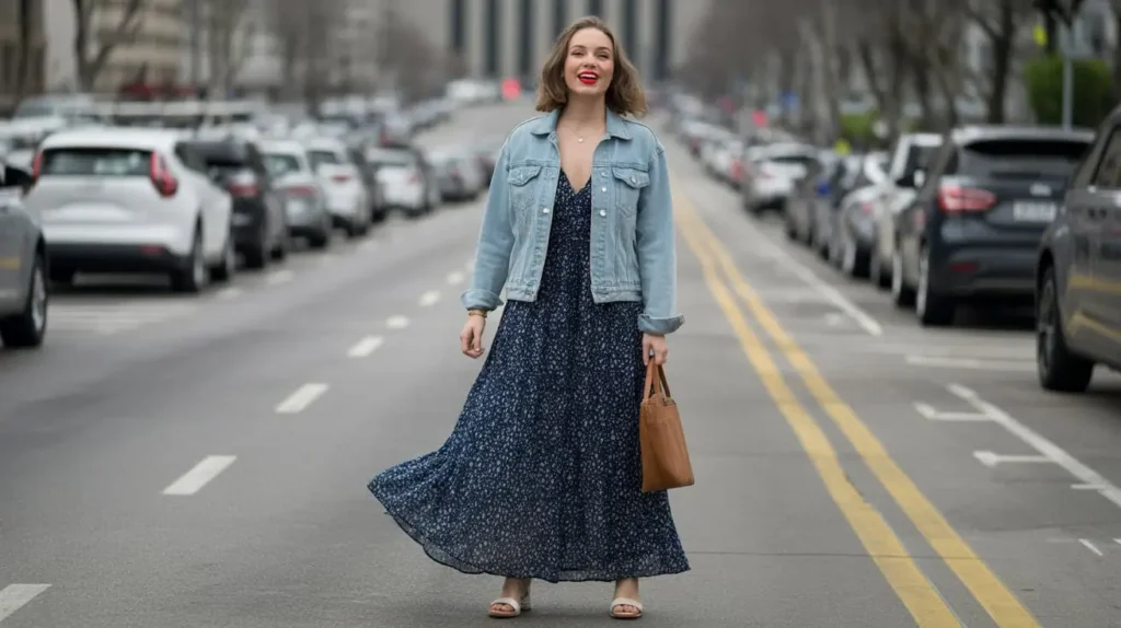 Then, you throw on the denim jacket. It instantly grounds the dress, adding a touch of casual, rugged coolness that keeps the look from feeling overly formal or fussy. It’s the perfect sartorial partnership.