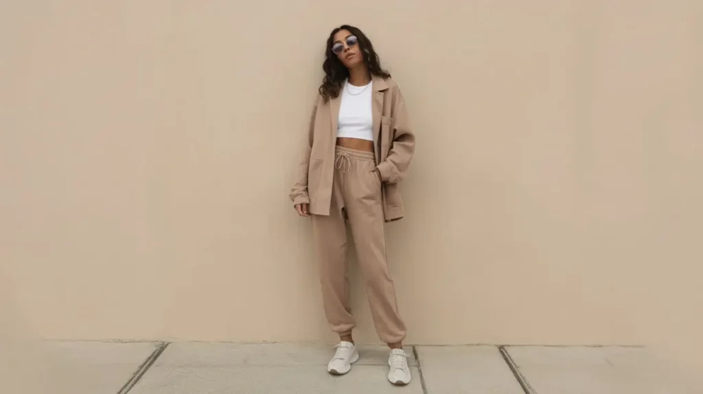 - A Classic Coat: Drape a camel wool coat or a black trench coat over your shoulders. The contrast between the structured outerwear and the soft joggers is fashion magic.