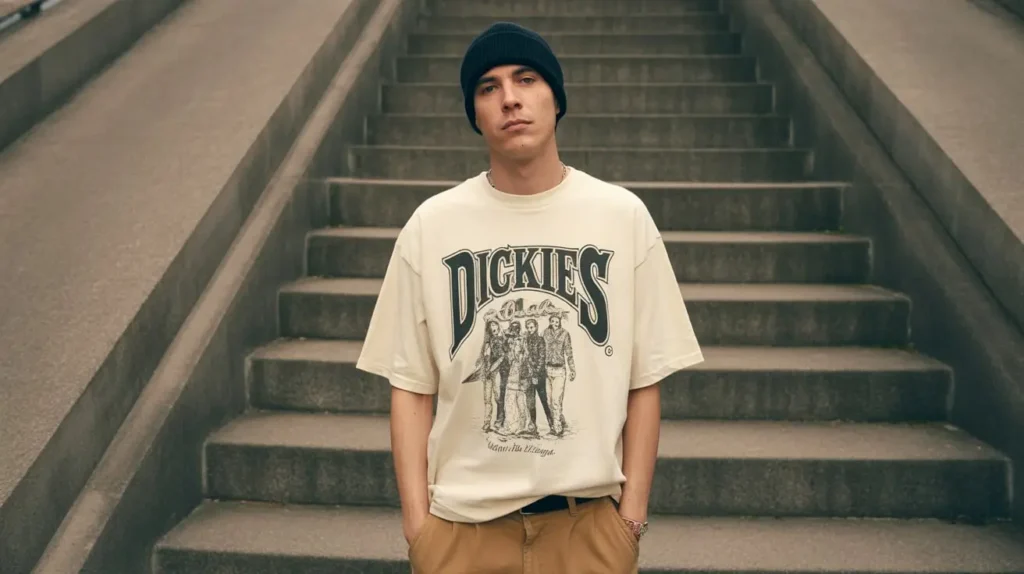 This look pays homage to Dickies’ deep roots in skate and street culture. It’s authentic, it’s comfortable, and it has an ageless quality that always feels relevant. It’s the perfect off-duty look for cruising around the city.