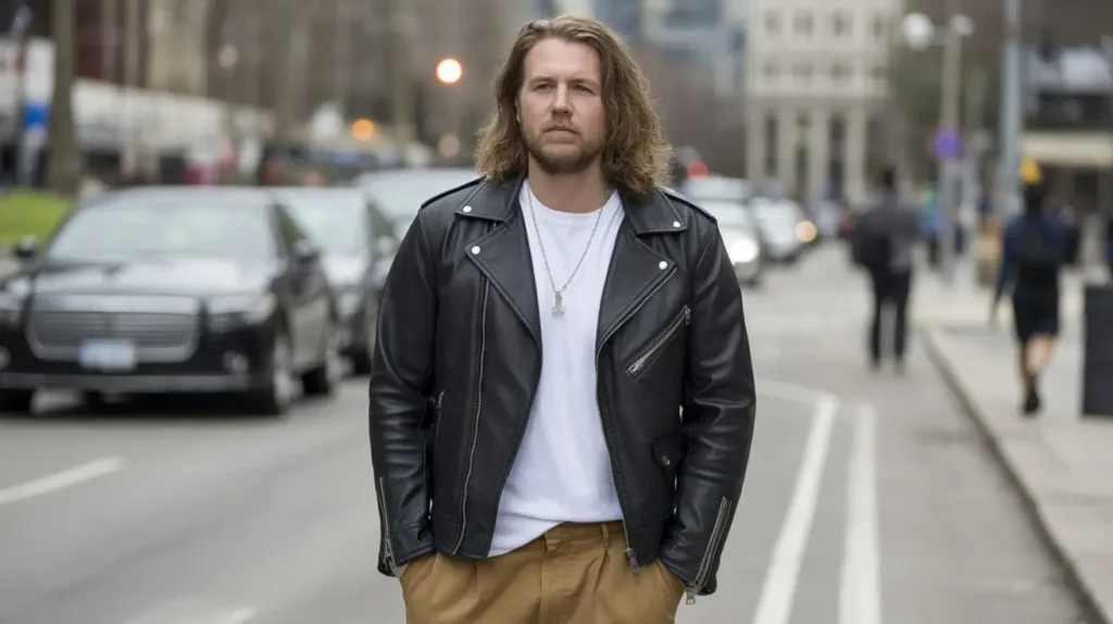 This outfit is a masterclass in texture. The smooth (or worn-in) texture of the leather is the perfect counterpoint to the matte, sturdy twill of the Dickies. Wear a simple, soft cotton t-shirt or a fine-knit sweater underneath to add a third texture to the mix.