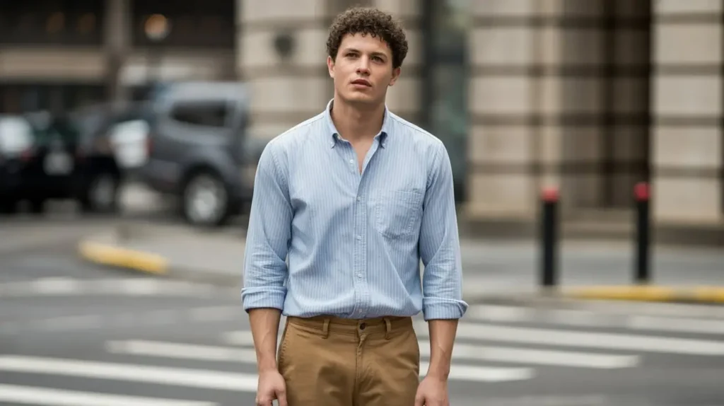 This is another look where a rolled cuff on the pants is a great touch. It leans into the casual, slightly undone preppy aesthetic. Pair it with a straight-leg or slim-straight Dickies style. You want the pants to be tailored, not baggy, to maintain that clean, preppy silhouette.