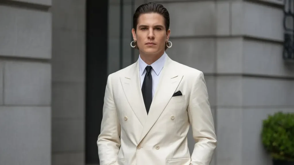 Why it works: Structured tailoring emphasizes strength and elegance while balancing proportions.