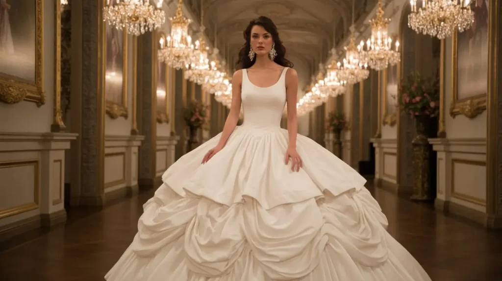 Ball gowns feature a fitted bodice with a full, layered skirt that creates a dramatic and luxurious appearance. Fabrics like tulle, satin, or silk add volume while remaining light. Perfect for weddings, galas, or evening parties that require a statement-making outfit.