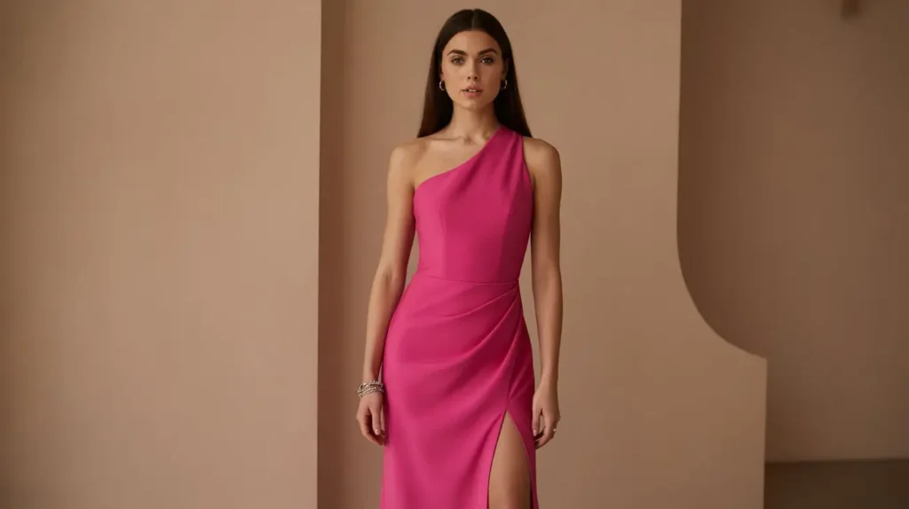 Why it works: The asymmetric hemline adds dynamic elegance while keeping it formal.