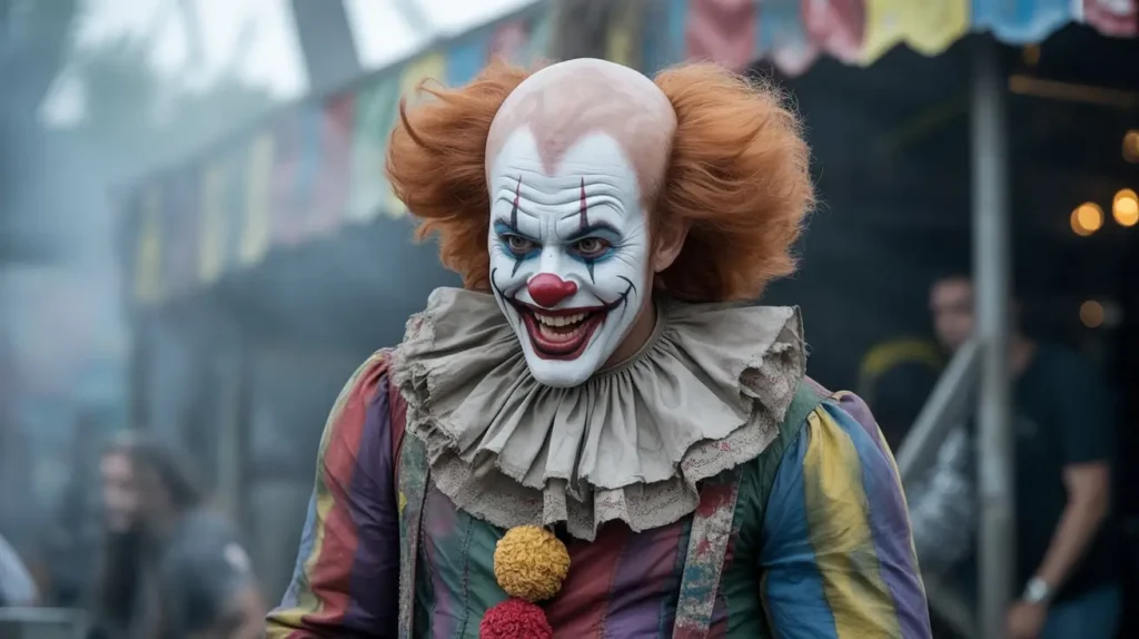A colorful yet tattered clown outfit paired with exaggerated makeup, painted smile, and props like balloons or creepy accessories creates a frightening costume. Add dark shading or fake blood for extra horror. Ideal for haunted events or Halloween parties.