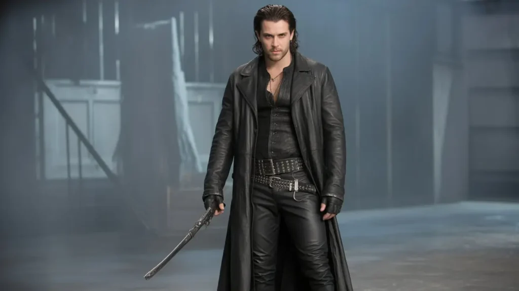 A long leather coat, high boots, and dark fitted pants combined with utility belts, faux weapons, and gloves give a gothic hunter aesthetic. Pair with dramatic eyeliner or scar makeup for authenticity. Perfect for pairing with a vampire-themed partner costume.