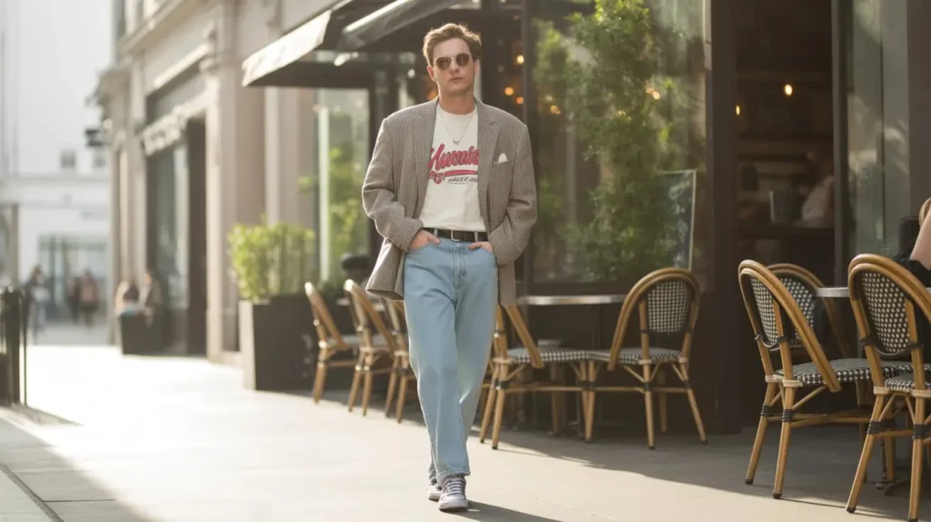 Why it works: Blazers introduce structure while graphic tees maintain personality and playfulness.