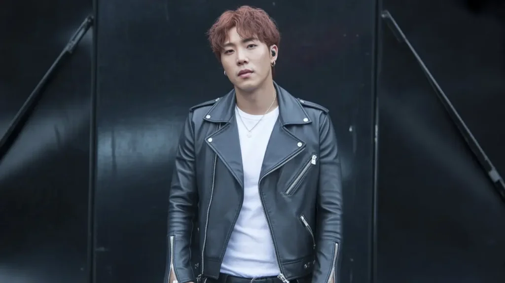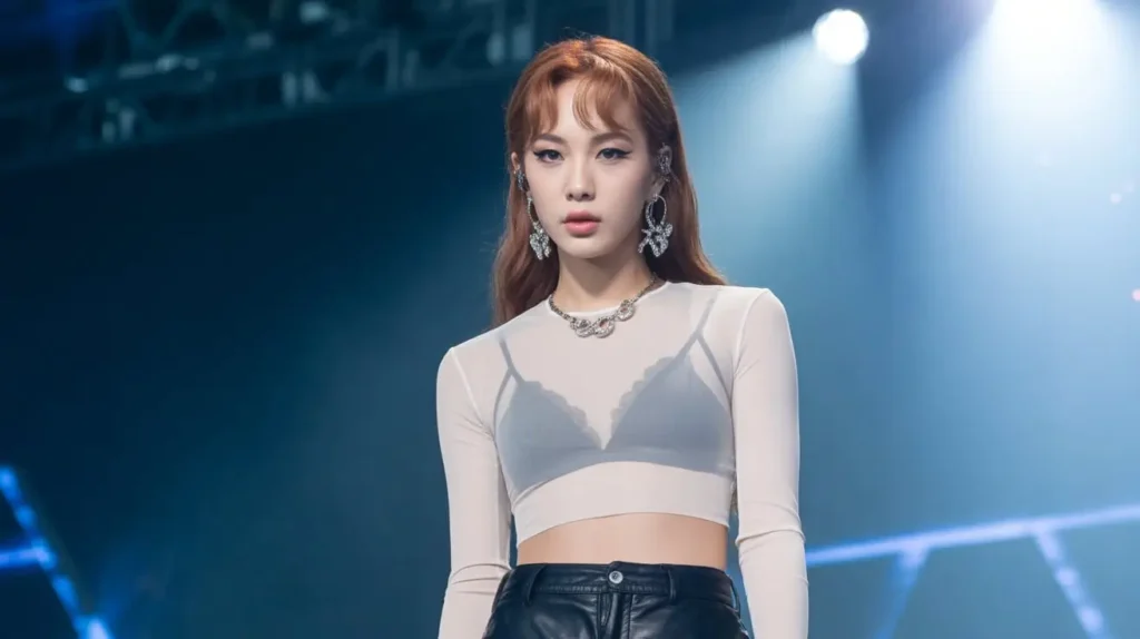 Why it works: Leather adds attitude and sharpness, central to K-pop edgy aesthetics.