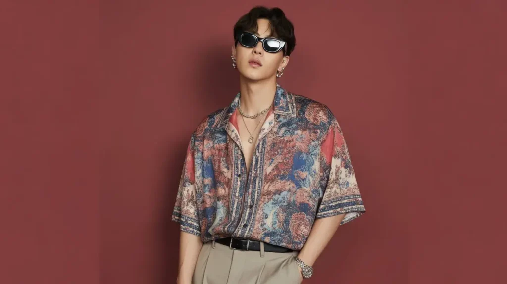 Oversized or fitted shirts with vibrant patterns—floral, geometric, or abstract—stand out in K-pop fashion. Pair with neutral bottoms or matching trousers and sneakers to create a balanced look. Statement earrings or hats elevate visual interest.