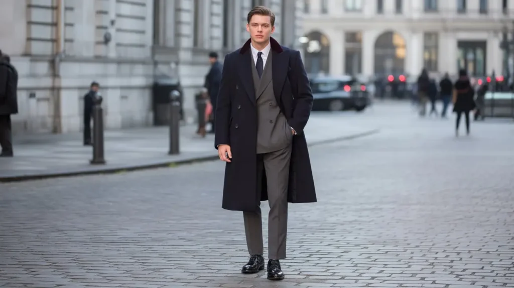 10. Old Money Fashion: Double-Breasted Coat with Trousers