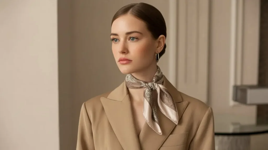 12. Old Money Fashion: Silk Scarf with Blazer