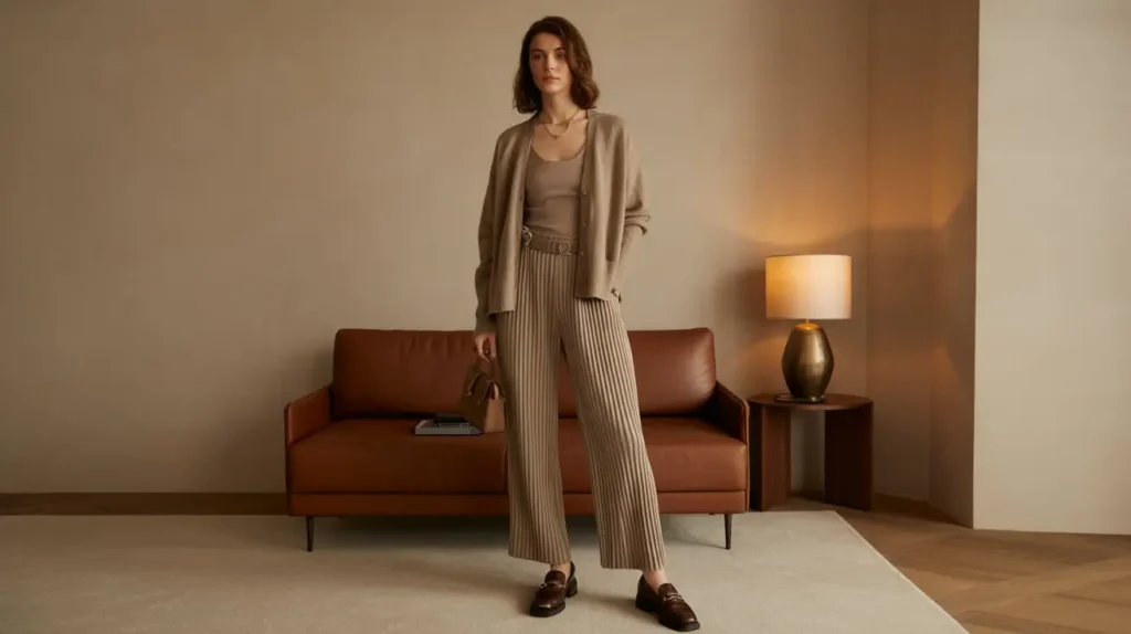 11. Old Money Fashion: Cashmere Cardigan with Pleated Pants