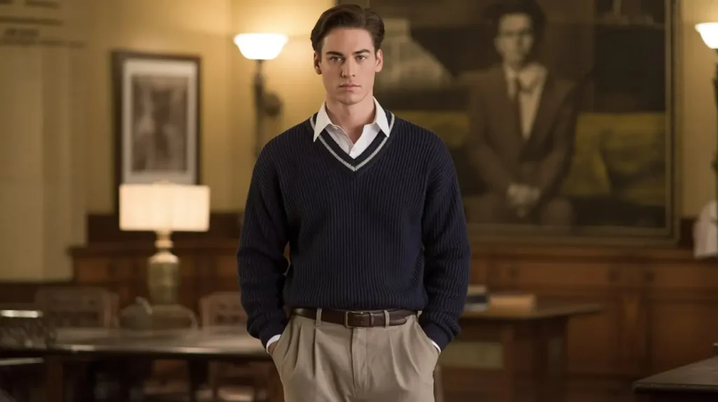 6. Old Money Fashion: V-Neck Sweater Over Collared Shirt