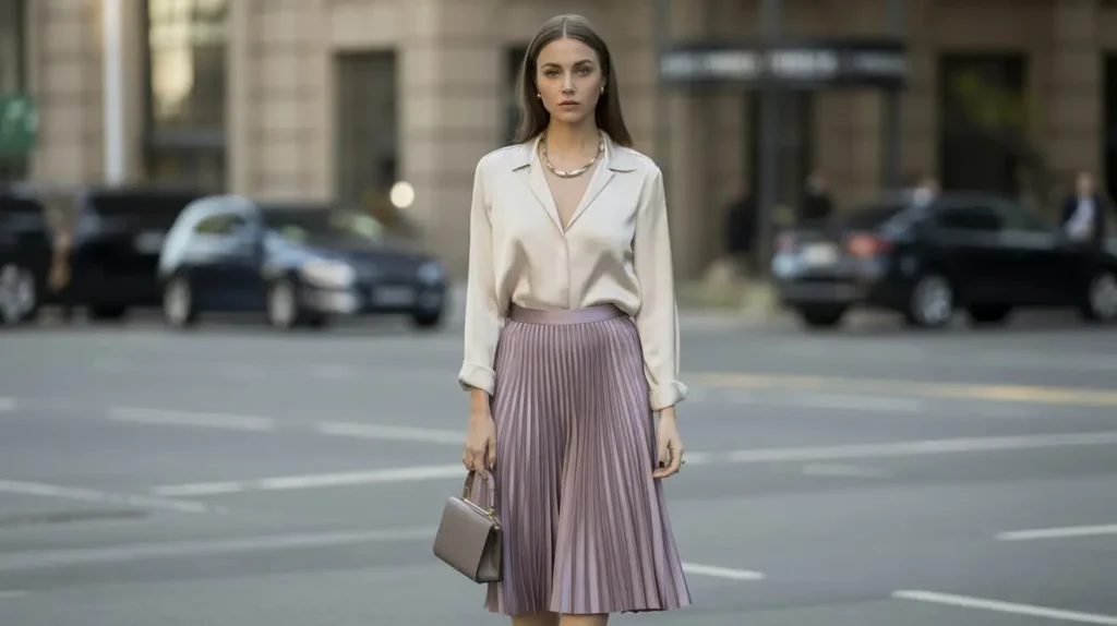 Why it works: Pleated skirts create movement and class, while silk blouses add luxurious texture, aligning with timeless Old Money principles.