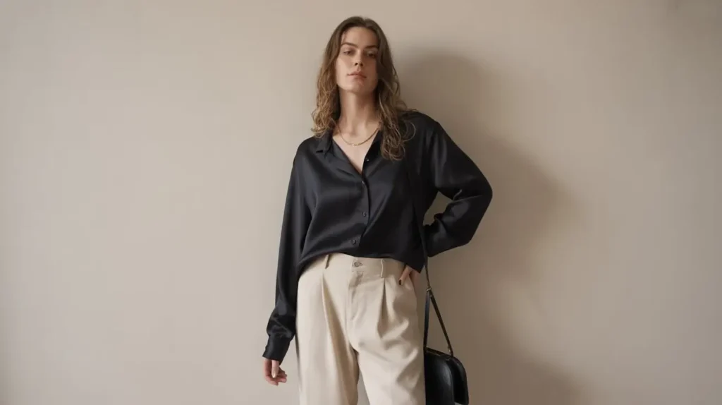 Minimalism isn’t about being boring; it’s about making every single piece count. In a monochrome outfit, texture becomes incredibly important. A silk scarf introduces a new texture—smooth, lustrous, and fluid—that contrasts beautifully with matte fabrics like cotton, wool, or linen.