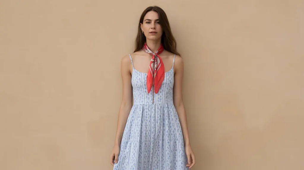 A simple summer dress is a blank canvas. A silk scarf is the paintbrush. This is one of the easiest and most effective pairings for warm weather, allowing you to accessorize without adding heavy layers or clunky jewelry.