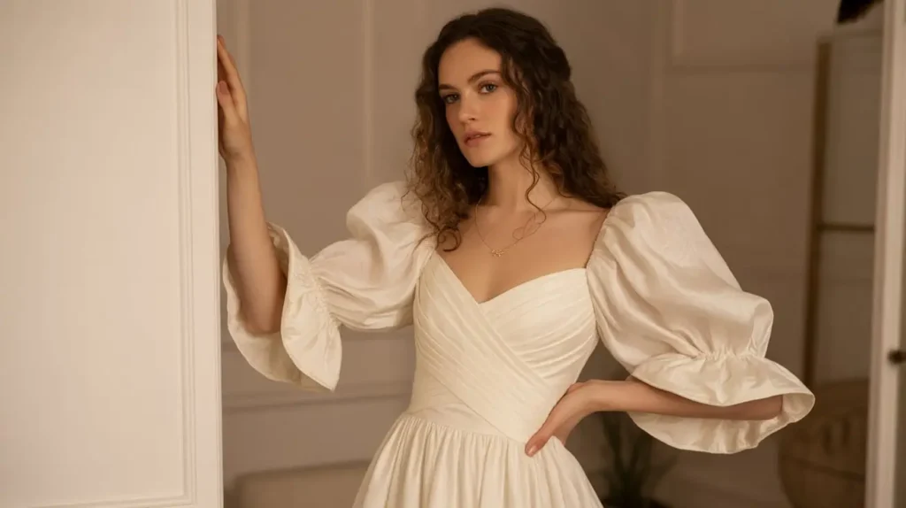A silk organza or silk chiffon puff sleeve adds a touch of whimsical, fairy-tale romance without adding bulk to the dress itself. They can be short and playful, or long and dramatic, bishop-style sleeves that gather at the wrist. Paired with a simple silk sheath or A-line dress, the sleeves become a stunning focal point.