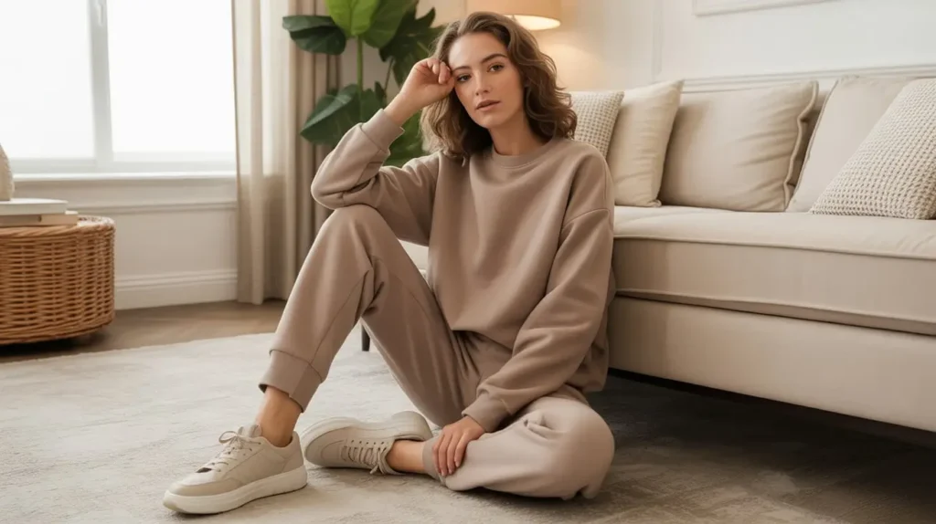 Matching sweat sets are having a moment, and I’m here for it. There’s something undeniably polished about wearing coordinated pieces, even if those pieces are technically loungewear. The chic neutral sweat set—think beige, cream, oatmeal, or soft grey—is your ticket to looking expensive on a Tuesday afternoon.
