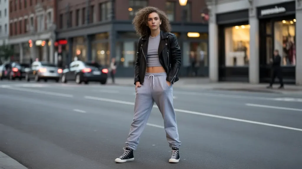 Okay, this one requires a tiny bit of confidence, but hear me out. Oversized sweatpants paired with a fitted crop top is that perfect high-low mix that fashion people are always going on about. You’re showing a little skin while also being completely comfortable. It’s the best of both worlds.