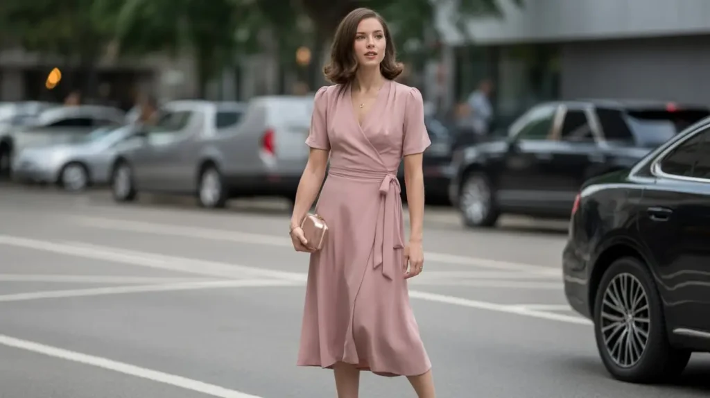 Why it works: The wrap style enhances shape while staying timelessly chic.