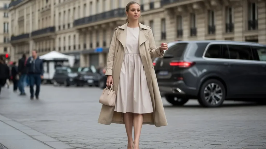 The trench coat offered women polished outerwear that worked over almost any dress. Its clean lines and neutral shades added elegance for both day and night outings. With heels or boots, it elevated simple looks instantly.