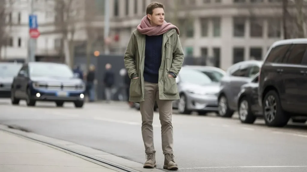 Why it works: Functional outerwear combined with tailored base layers keeps the look both practical and polished.
