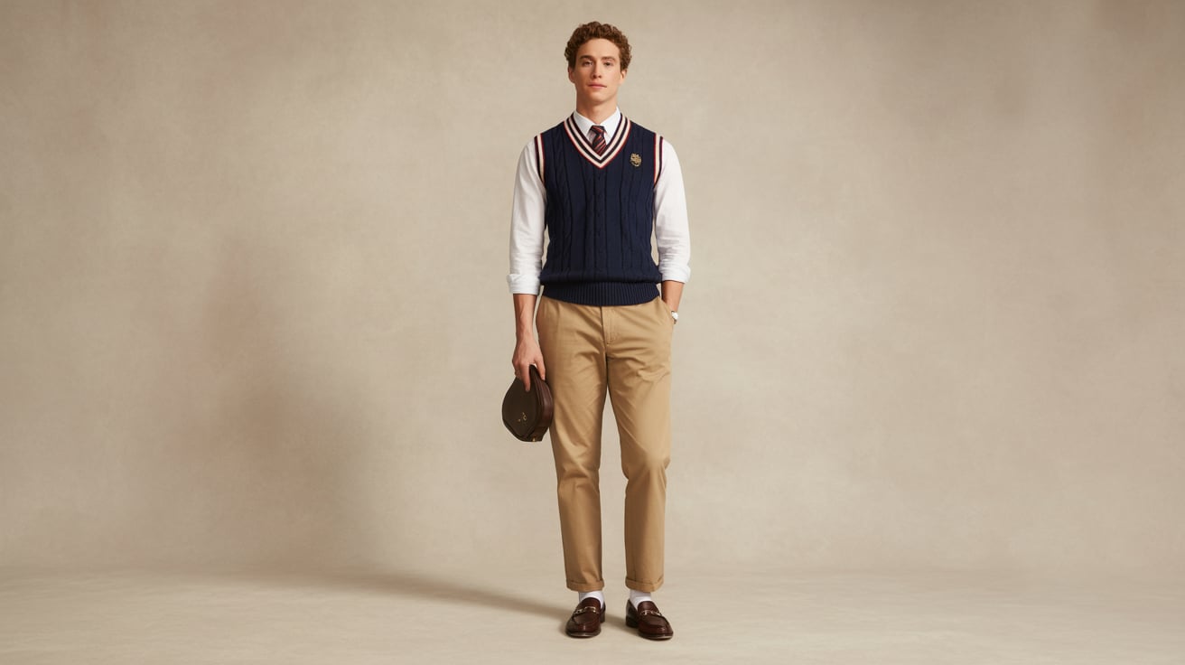A sweater vest layered over a crisp button-down shirt with chinos modernizes classic prep for casual offices. Pair with brogues or loafers and a simple watch to complete the outfit. Choose neutral or muted contrast for a refined look.