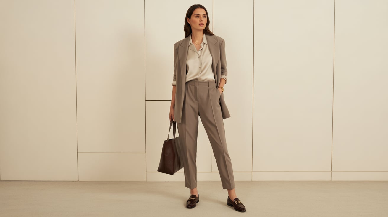 Tailored joggers made from suiting fabric paired with a silk or refined blouse bridge comfort and office polish. Pair with loafers or low heels and a neat tote for a practical workday outfit. Keep the joggers slim at the ankle to read tailored rather than athleisure.