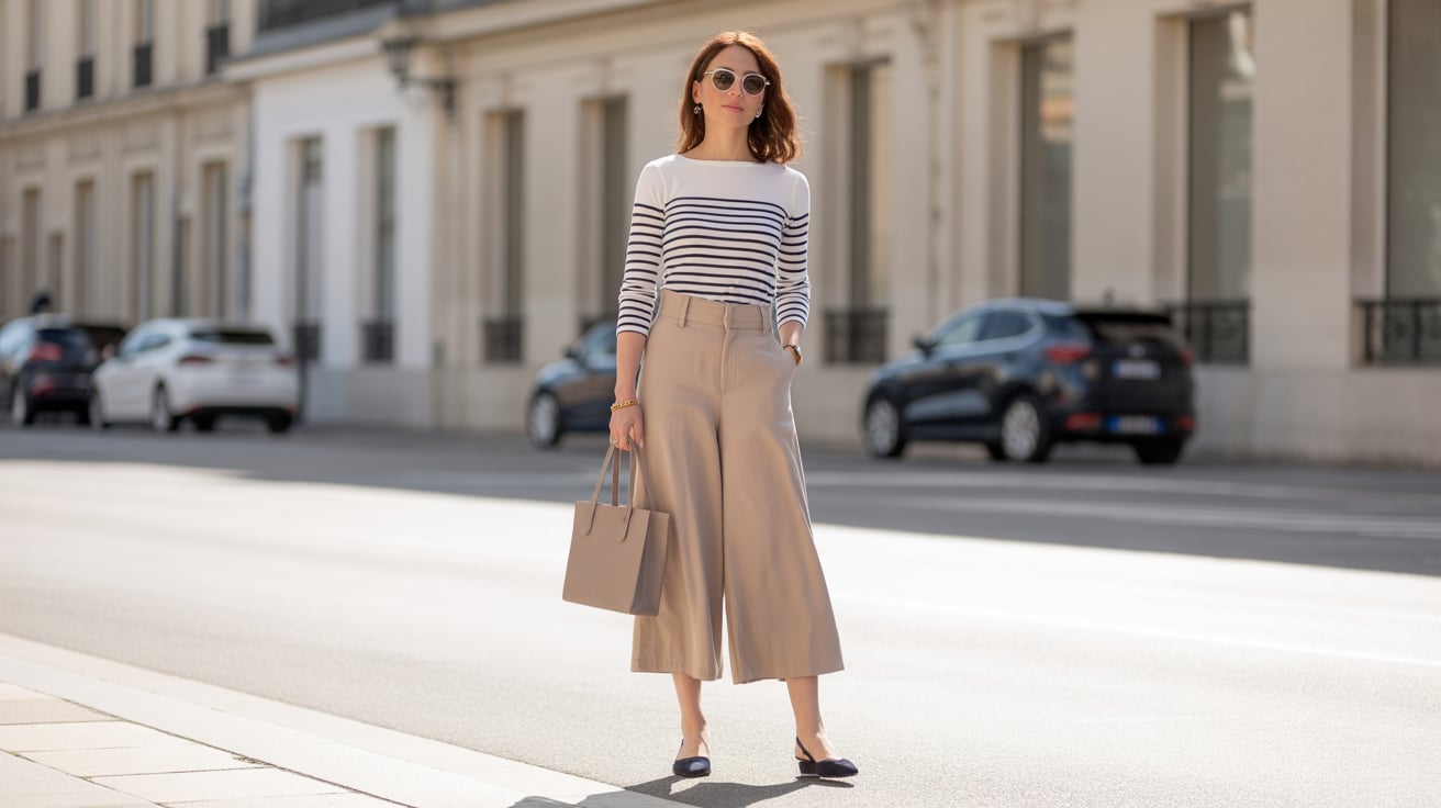 Why it works: The culottes provide airflow and movement, while the Breton top keeps the look crisp and styled.