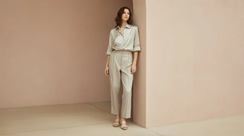 13. Silk or Satin-Blend Shirt with Linen Trousers